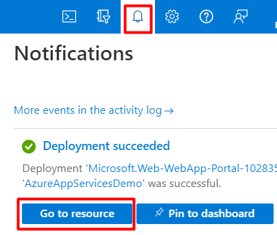 Once the deployment succeeds, a notification will be displayed, and you can open it and click to go to the resource: