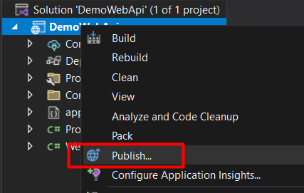 app.Run();To deploy the project manually, right-click on the solution and click on “Publish”: