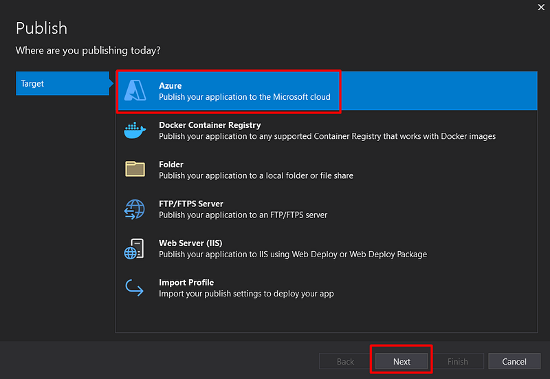 Select “Azure App Service (Windows)”, if you are using Windows, otherwise select “Azure App Service (Linux):