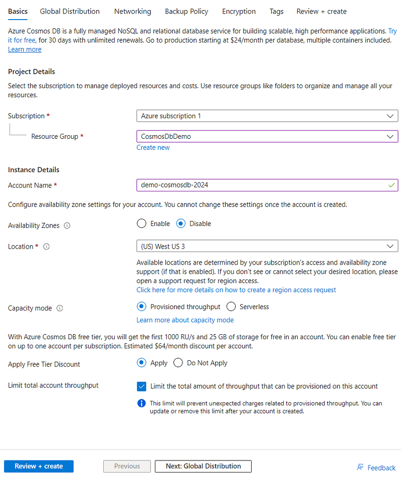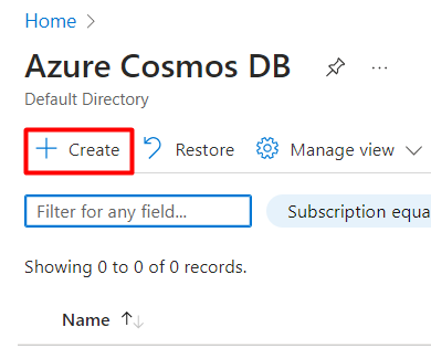 Creating a Cosmos DB Account