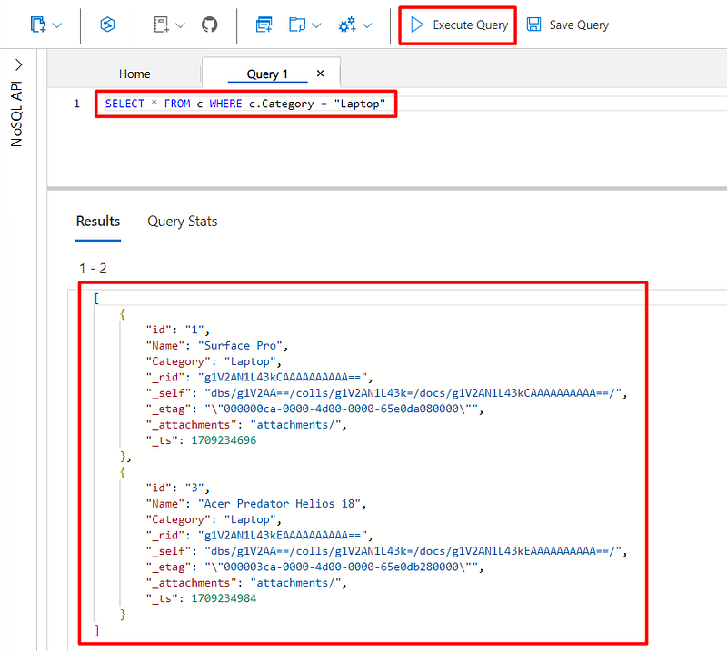 - _ts: This is the timestamp of the last update of the document. This property is useful for tracking the temporal order of document modifications.** Querying data in Cosmos DB**