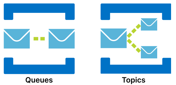 The exchange of messages between applications that use the Service Bus can be done using two different structures: Queues and Topics.