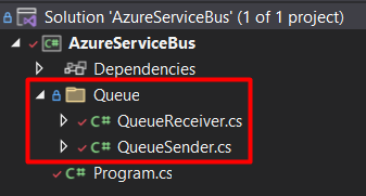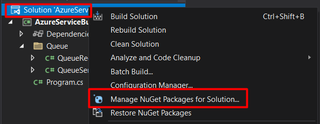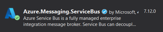 Install-Package Azure.Messaging.ServiceBusNote: Azure.Identity package can be used when you want to authenticate with your Visual Studio account, instead of providing an access key. For this demo, I’m using the connection string.