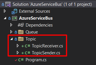 - On line 5, it creates a ServiceBusSender, for the specific topic name.