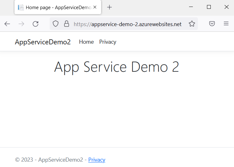 This is the App Service Demo 2 (appservice-demo-2.azurewebsites.net):