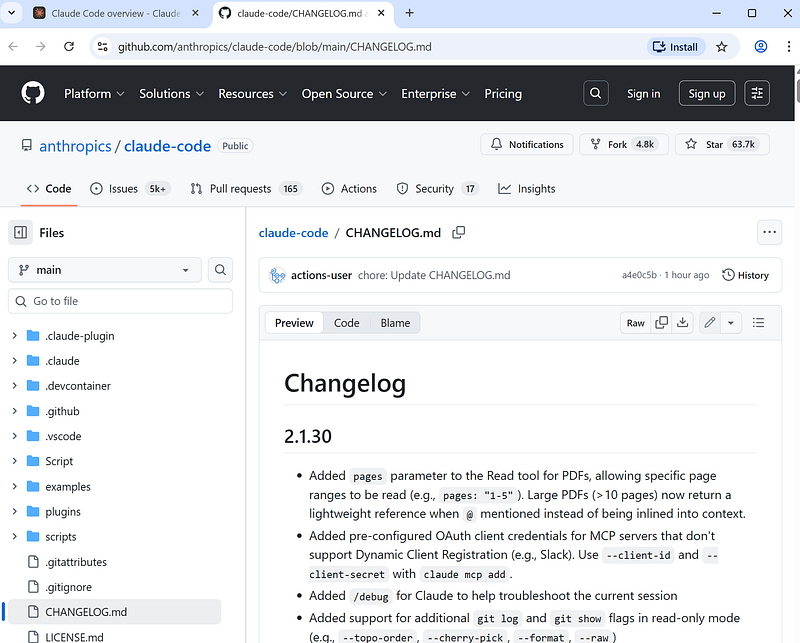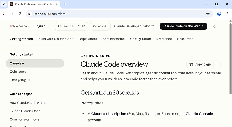 Open claude code docs website and click on changelogAnd the website will be opened: