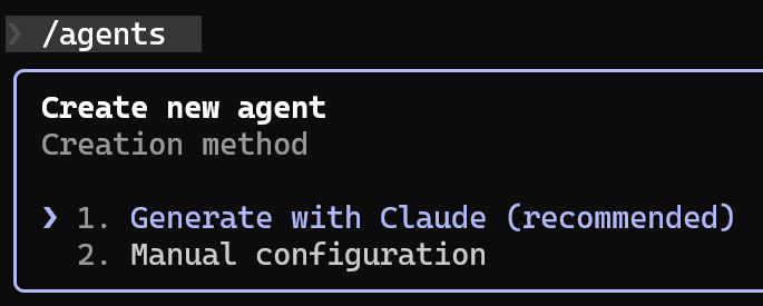 To create a Sub-Agent, in Claude Code, type /agents and select the option to create a new agent, select the project location and select the option to Generate with Claude: