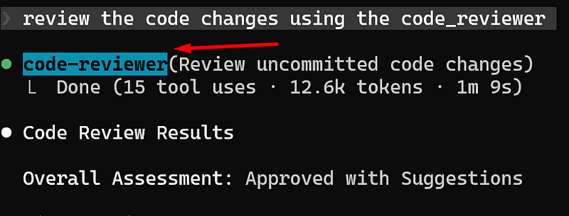 review the code changes using the code_reviewerAnd Claude Code will launch the Agent to review the code changes and propose suggestions: