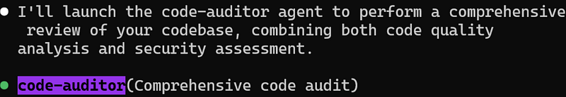 3. **Result Synthesis**: After both agents complete, synthesize their findings into a unified, actionable report.Now we can write run code-auditor and we can see that it triggered both sub-agents:
