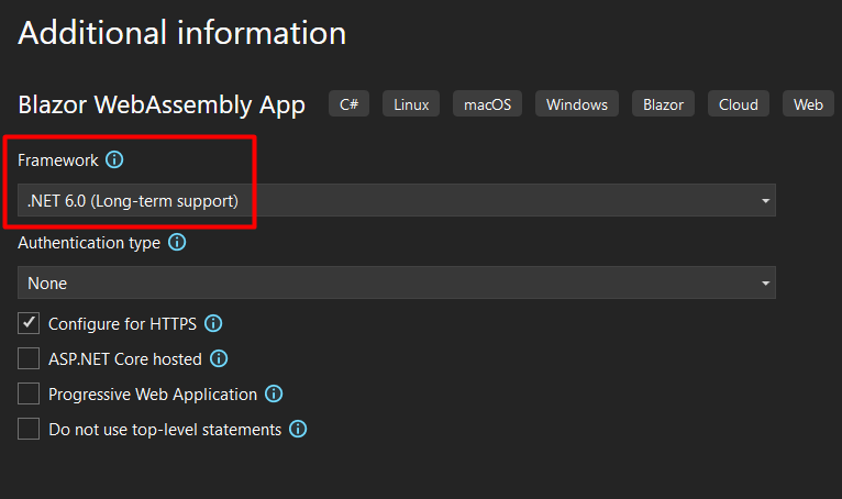 For this project, I’m using .NET 6.0: