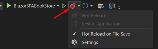 In Visual Studio, you can see the Hot Reload icon next to the button to run the application:
