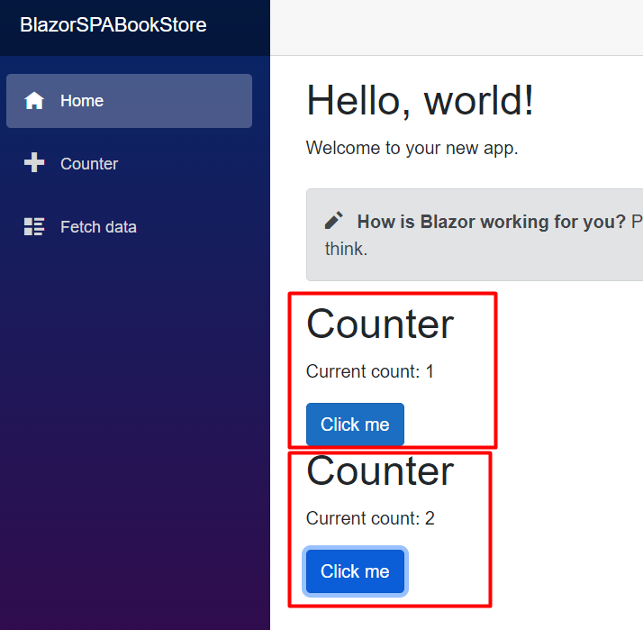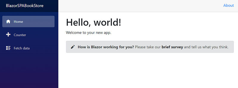 This is the default page that is created when we create the Blazor project: