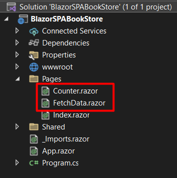 Now if you check in the “Pages” folder, we already have two components: Counter.razor and FetchData.razor (the name of the component, is the file name):