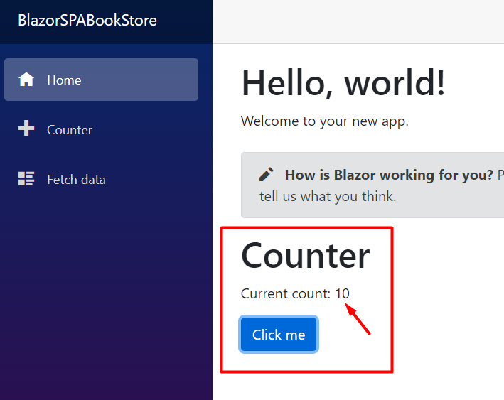 <Counter ValueToSum="10"></Counter>Now on each click, the counter will sum 10:
