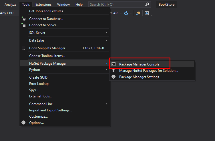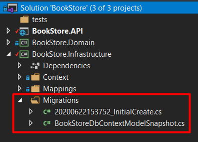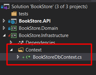 Install-Package Microsoft.EntityFrameworkCore.Design -Version 3.1.5Now let’s create a folder for our Entity Framework Context, and also create the class BookStoreDbContext: