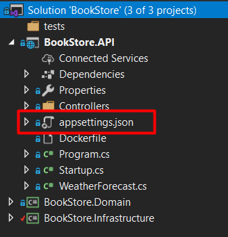 We need to configure the connection string to access the database. To do that, open the appsettings.json file: