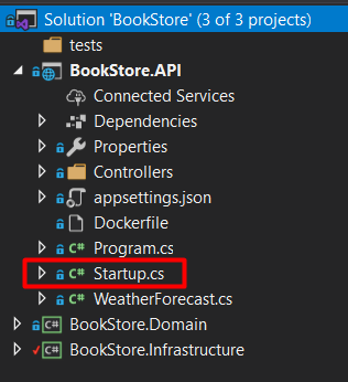 In the Startup class, we are going to add the configuration to access the database. Open the Startup.cs: