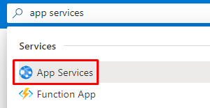 To deploy the Front-End application, we need to create an “App Service”. In Azure portal, search for “App Services” (this service allows us to deploy our WEB API as software as a service (SaaS):