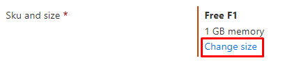Note that I’m using the plan “Free F1”, because this is a demo. If you want to deploy your application at a production level, I recommend you to use a “Production” plan. You can change that by clicking on this option: