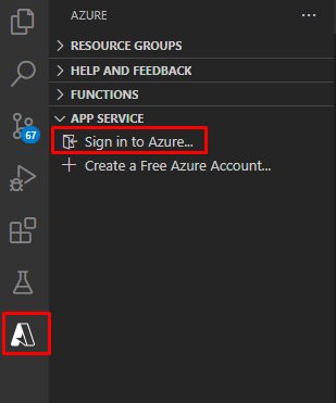In Visual Studio Code, go to the “Azure App Service” extension and click in “Sign in to Azure…”: