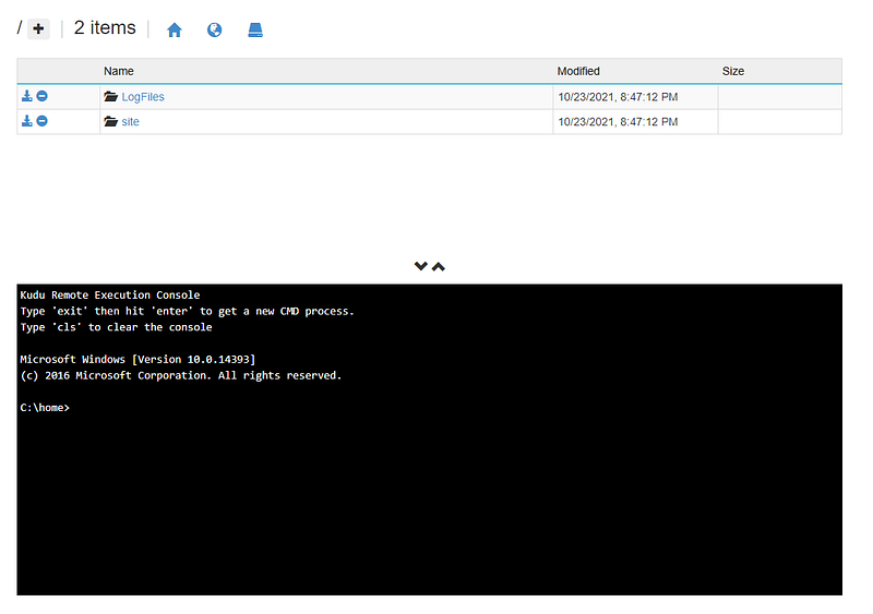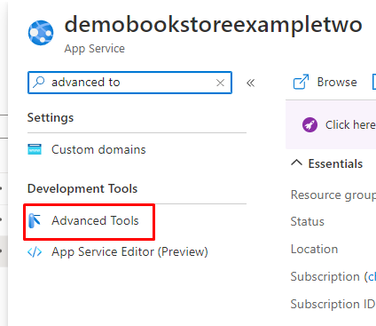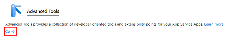 Another possible way to deploy the Angular application in Azure is by KUDU. This way we can manually add the files by accessing the App Service in the Azure portal and searching for “Advanced tools”: