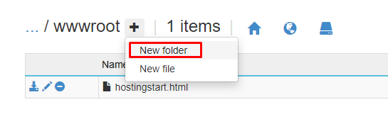 Click in “site” and in “wwwroot”, and click in the “+” icon to add a new folder: