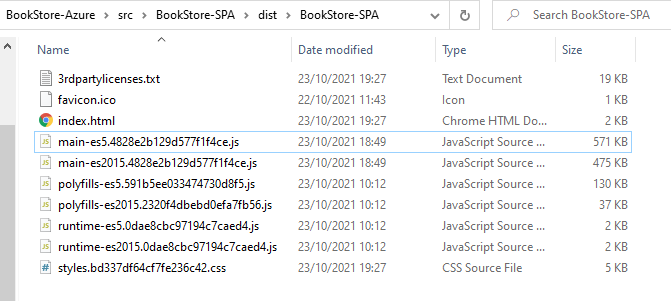 ng build --prodAfter executing this command, you can find some files inside of a folder inside of the “dist” folder. These files are the files that we need to deploy in Azure.