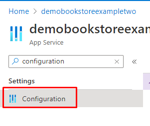 In your App Service in Azure portal, search for “Configuration”: