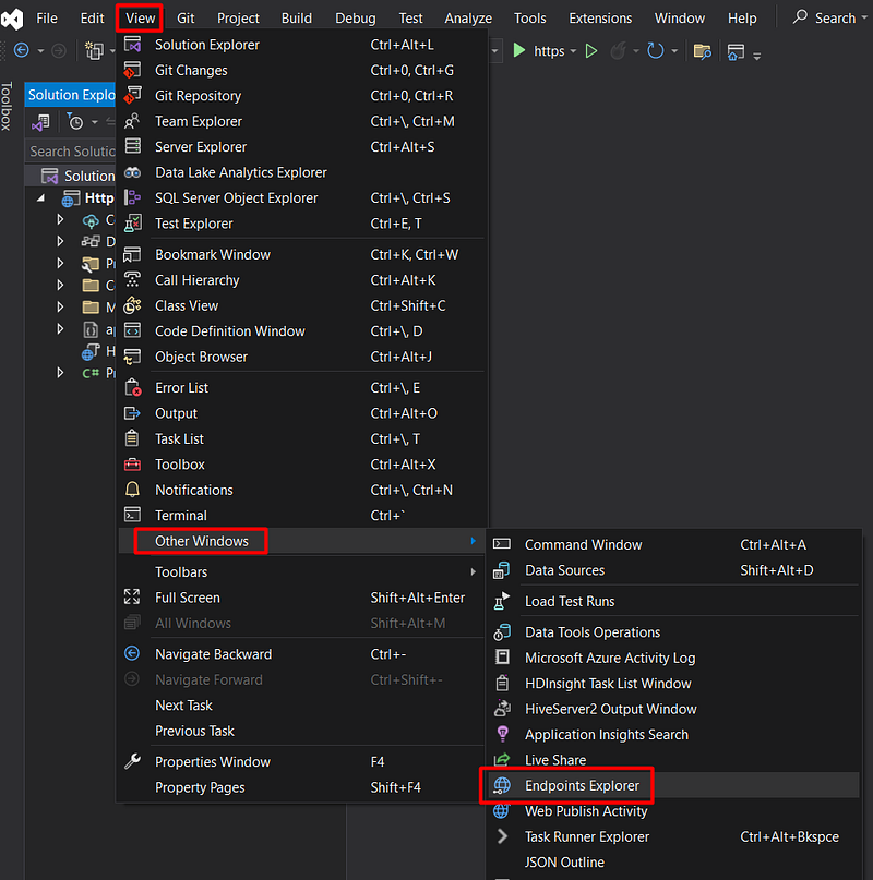 Every time you create a new endpoint, you don’t need to manually update the .http file, instead, you can use the VS feature on the Endpoints Explorer, which will do that for you. For that, you need to open the Explore Endpoint window: