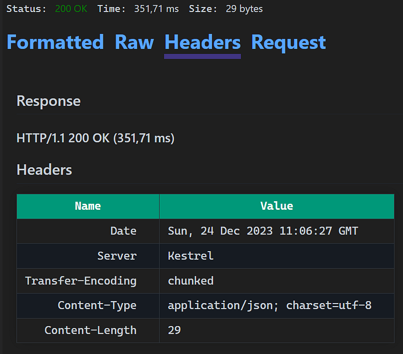 The Status code and the Formatted response: