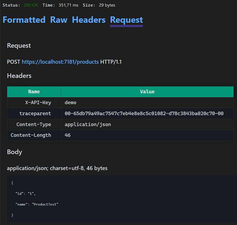 When you click on this option, a request will be sent, and you can see all the request details within VS. For example: