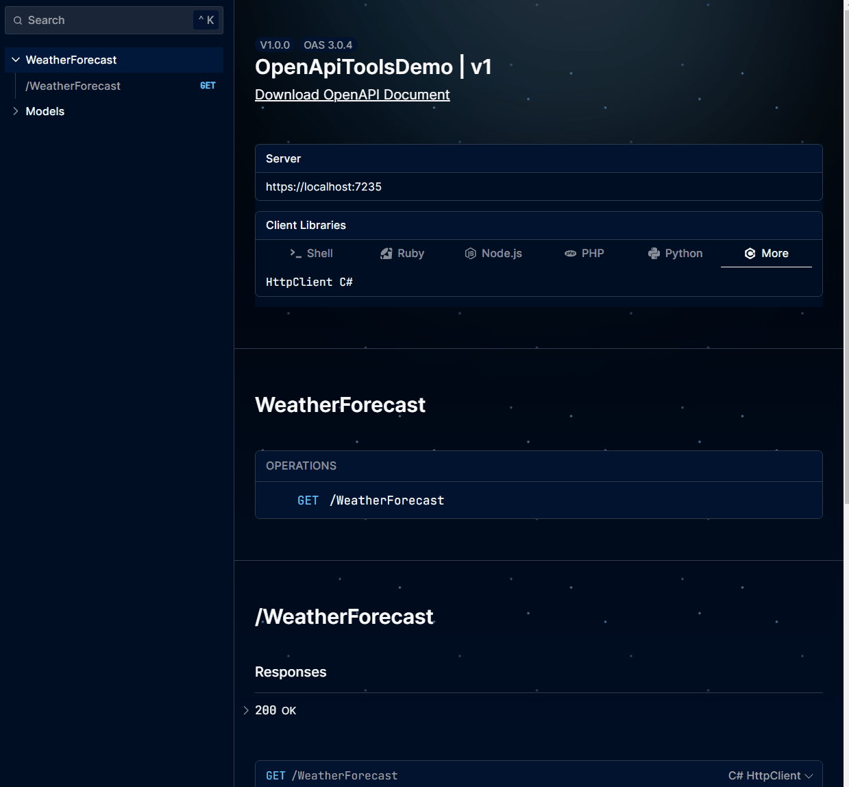 This is the link for the project in GitHub: https://github.com/henriquesd/OpenApiToolsDemo