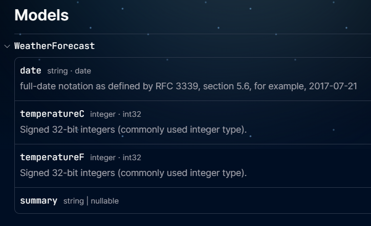 You can also see the Models, which are the structured representations of the API’s data: